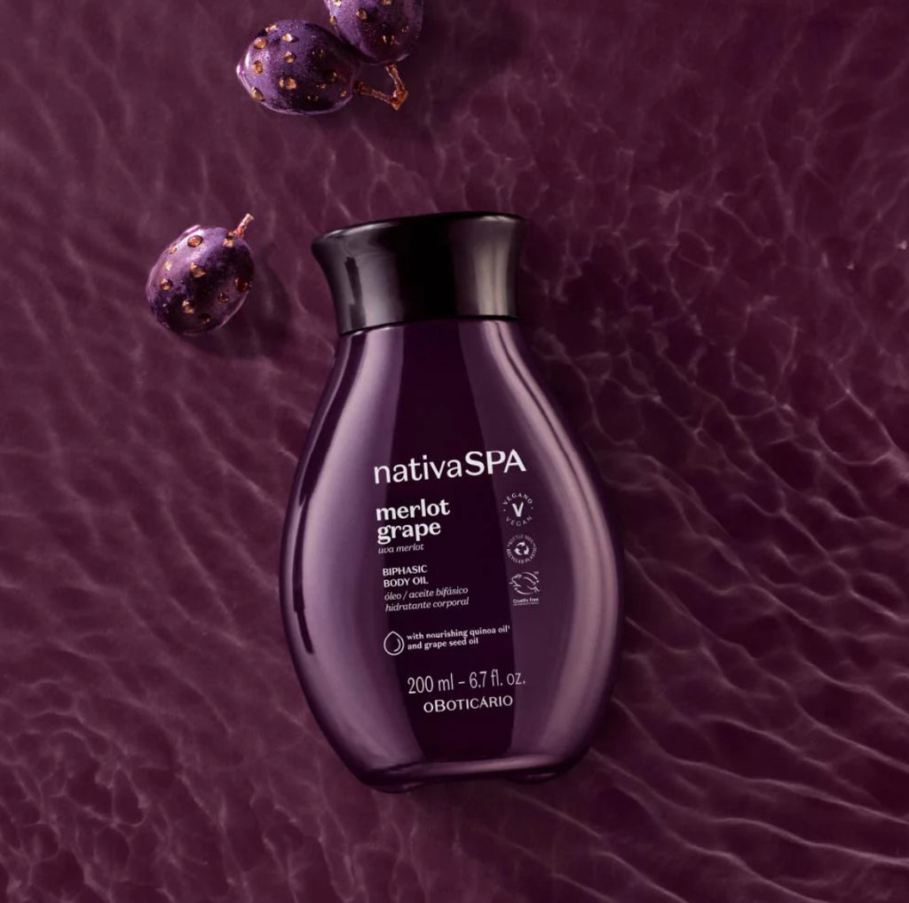 O Óleo Bifásico Hidratante Nativa Spa Uva Merlot realça o brilho natural da pele, deixando-a macia, suave, hidratada e iluminada.